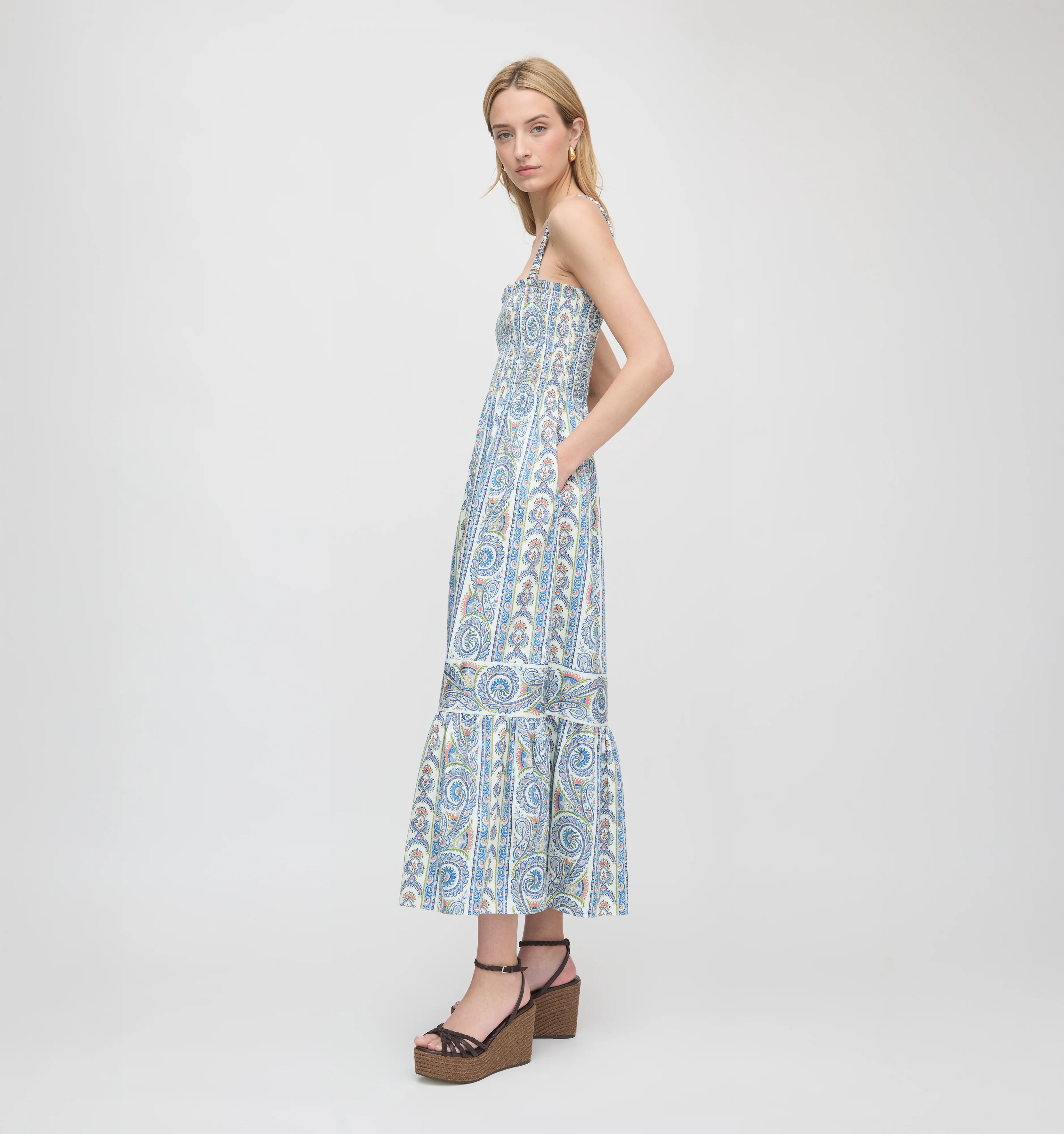 Meet the Anjuli, our sleeveless maxi Nap Dress® that’s as perfect for layering as it is for wearing on its own. It features our proprietary, elasticated Nap Smocking, elastic straps for a flexible fit, a slim maxi skirt, and a flirty, flouncy hem.