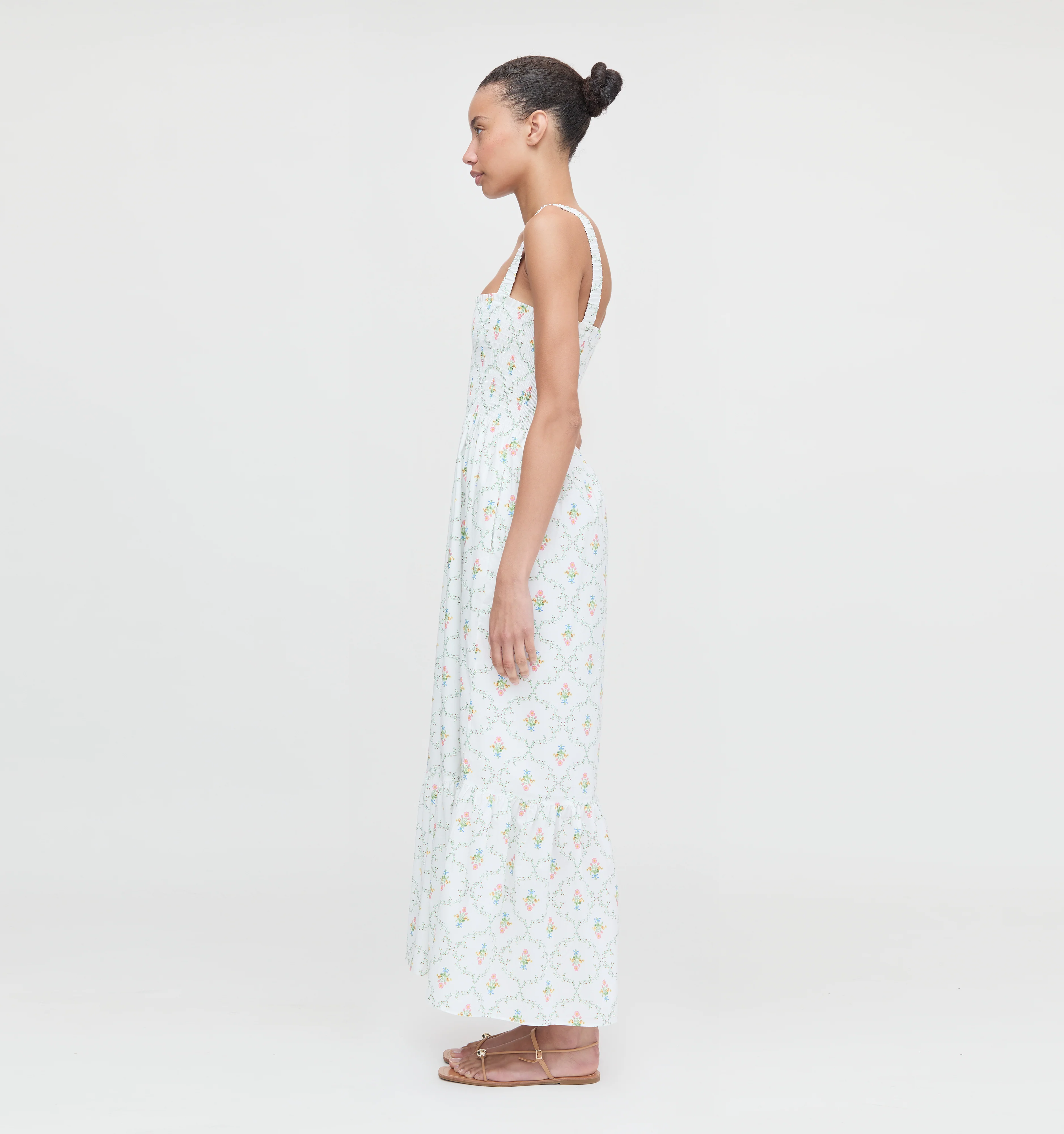 Meet the Anjuli, our sleeveless maxi Nap Dress® that’s as perfect for layering as it is for wearing on its own. It features our proprietary, elasticated Nap Smocking, elastic straps for a flexible fit, a slim maxi skirt, and a flirty, flouncy hem.