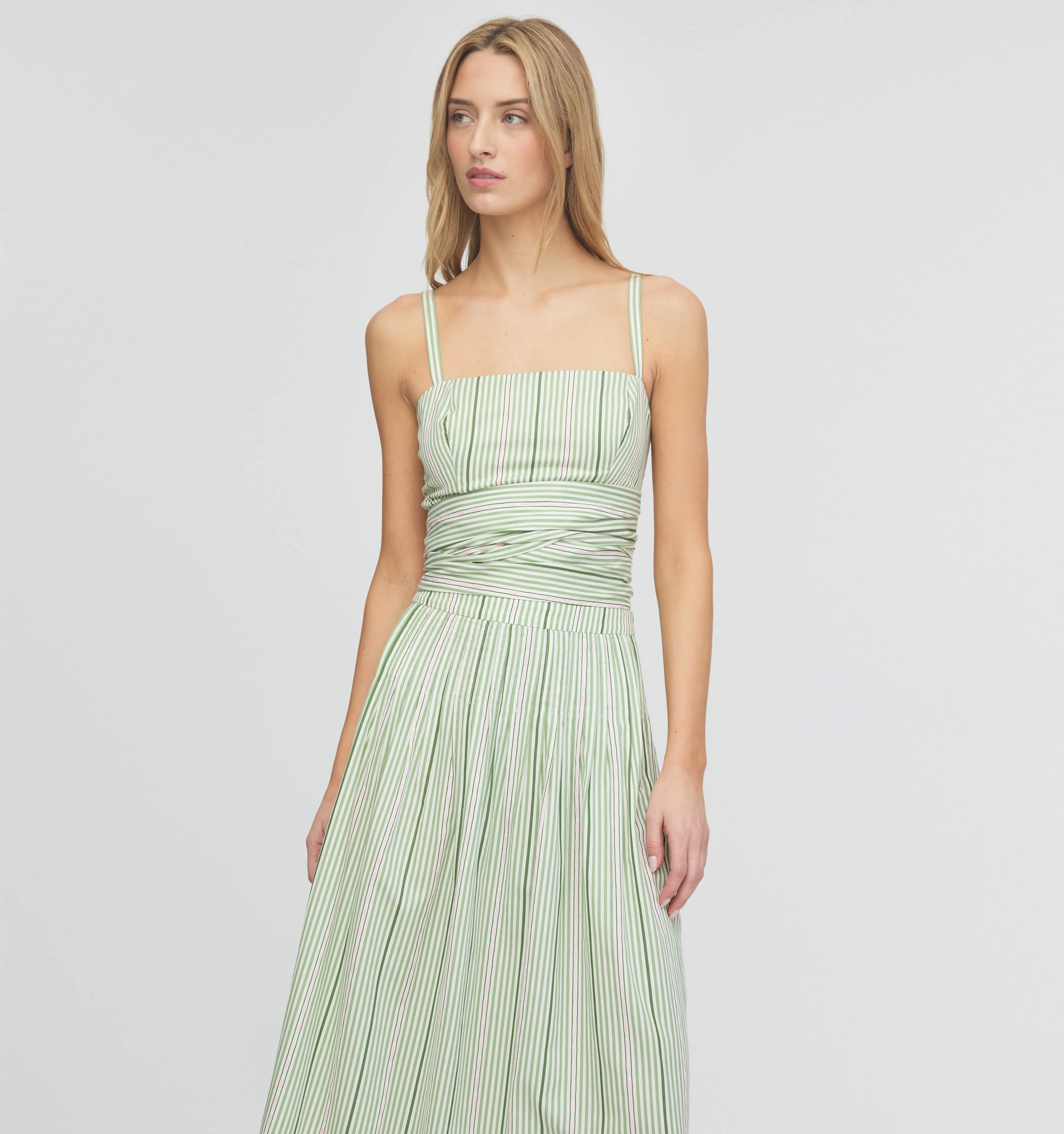 Meet the Miranda Top. Crafted from striped cotton, Miranda features a fitted bodice and a cropped silhouette. Tie the bow in the front for a statement moment, wrap it all the way around for a super snatched waist, or knot it loosely in the back for something more casual.